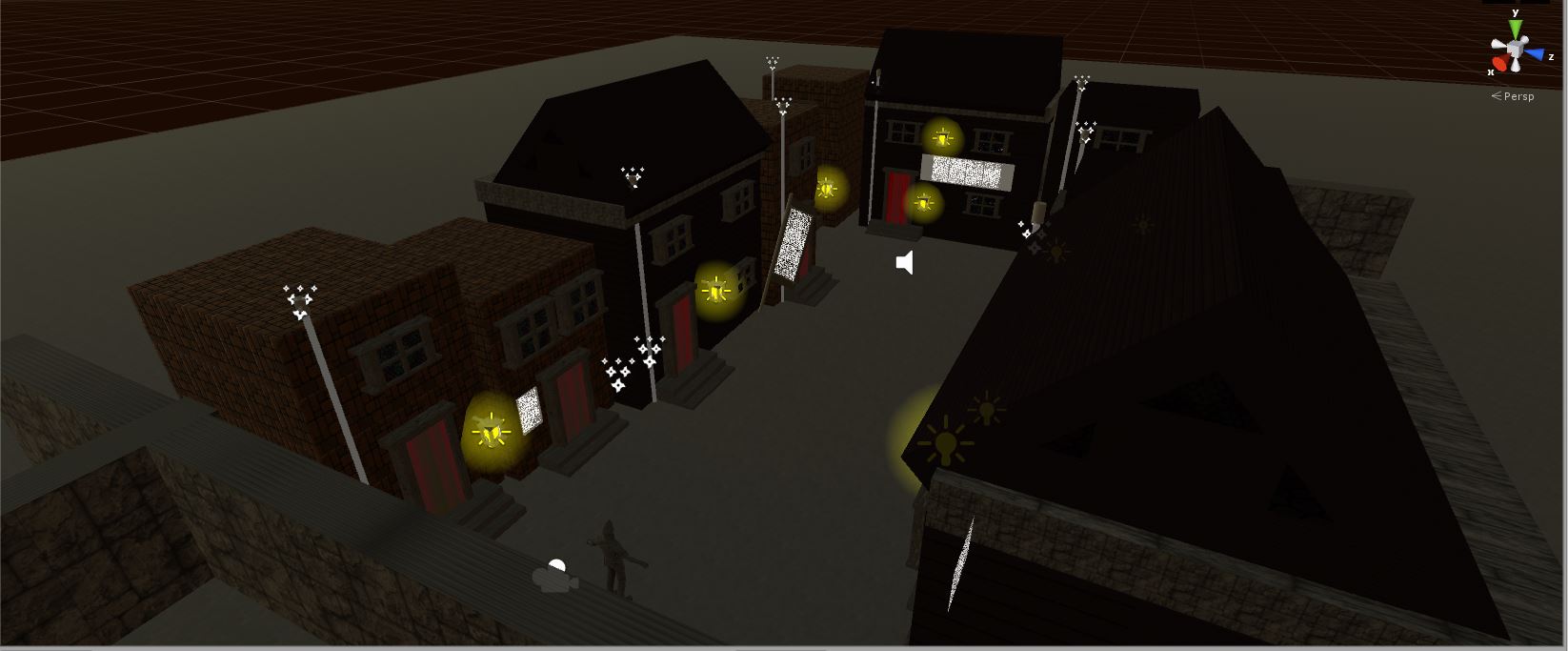 This Frame shows the scene’s particle generators, note that there are two attached to the player for snow, this helps lessen graphical strain on the scene as it isn’t being rendered everywhere. Instead, the snow is being drawn directly above and a bit farther in front of the player character, this helps give the illusion of snow in the distance, while not having to actually generate that many particles.